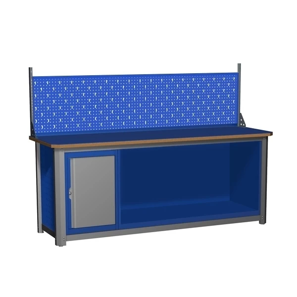 - Верстаки комплектуются вместительными тумбами четырёх видов: с дверцей, запираемой на ключ; с дверцей и одним/двумя выдвижными ящиками; с шестью ящиками.